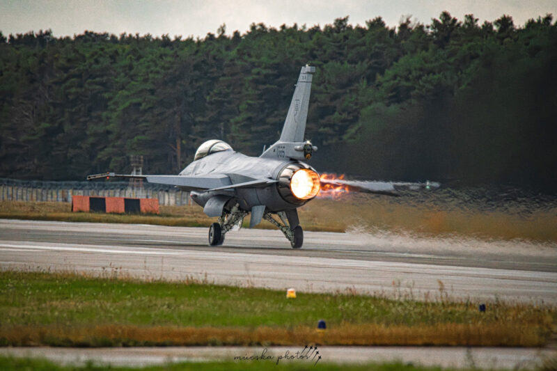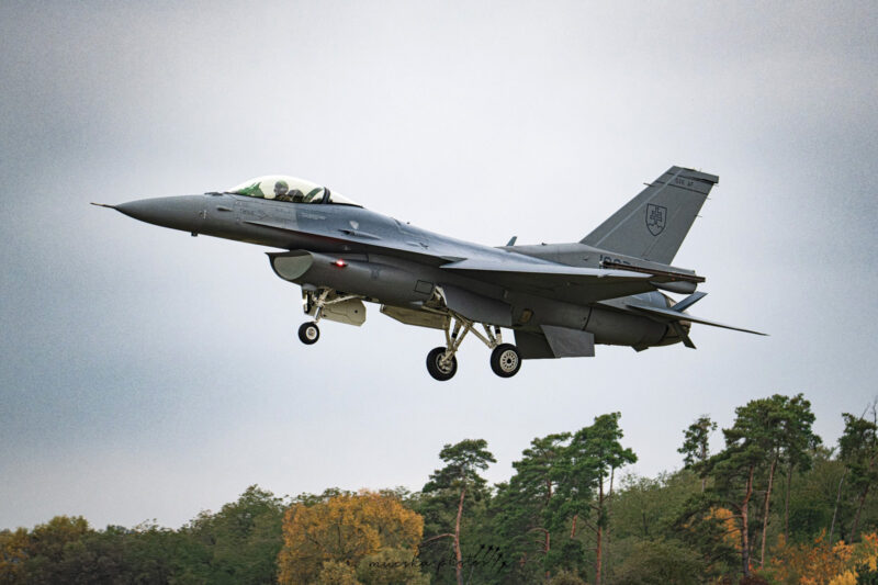Do cvičení STTG25 Air LIVEX se zapojila i dvojice nových letounů F-16C Block 70 slovenského letectva, pro jejichž piloty šlo o vůbec první spolupráci s aliančními kolegy ve vzdušném prostrou Slovenska. Příslušníci 81. krídla Sliač, dočasně působící ze základny v Kuchyni, zahájili letos v říjnu intenzivnější výcvik včetně letů ve dvojici, tak aby mohli již v průběhu příštího roku zabezpečit službu QRA vlastními silami. Během cvičných letů zatím slovenské F-16 létají v čisté konfiguraci bez jakýchkoliv podvěsů. (foto: Martin Kaco Múcska, https://www.facebook.com)