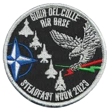 Společná fotografie jednotek ze cvičení „Steadfast Noon 2023“ na základně Gioia del Colle. Čáslavští „tygři“ z 211. tl jsou vlevo před JAS-39C tč. 9244 „Cyber Tiger“, uprostřed domácí příslušníci 36° Stormo “Helmut Seidl” s F-2000A Tifone v pozadí a vpravo pak personál 336. Mira „Olympos“ před F-16C ze základny Araxos. Identita některých aktivních pilotů je záměrně skryta. (Foto 211. tl)