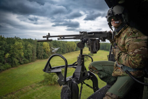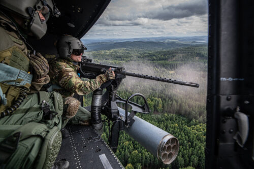 Dvojice víceúčelových Venomů působila v průběhu letových misí z Kunovic s volačkami „GHOST“ a s různou kombinací palubní výzbroje v podobě kulometů M240 ráže 7,62 mm, GAU-16/A ráže 12,7 mm nebo rotačních GAU-17/A ráže 7,62 mm. Zajímavostí je, že oba vrtulníky měly v průběhu cvičení odmontovaná pomocná dvířka nákladové kabiny. Detailní snímky palubních střelců jsou pouze ilustrační a pocházejí z nedávných ostrých střeleb. (foto: LKKU Photography a 22. zVrL)
