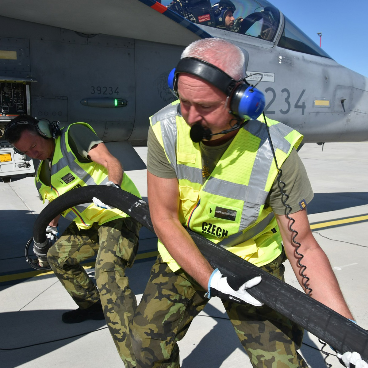 (zdroj: „NATO Tiger Meet 2025: Češi si vyzkoušeli stroje spojenců, cvičili i tankování se spuštěnými motory“, autor kapitánka Hana Havrdová, https://acr.mo.gov.cz/informacni-servis/zpravodajstvi/nato-tiger-meet-2025:-cesi-si-vyzkouseli-stroje-spojencu–cvicili-i-tankovani-se-spustenymi-motory-260623/; Tiger Meet 2025 tem início em Beja, https://www.emfa.pt/noticia-5315-tiger-meet-2025-tem-inicio-em-beja; Aircraft Cross-Servicing (ACS): Interoperabilidade entre Aliados, https://www.emfa.pt/noticia-5318-aircraft-crossservicing-acs-interoperabilidade-entre-aliados; SPECIÁL: NATO Tiger Meet 2025 v Beja, Portugalsko, autor Jean François Auran, https://www.aereo.jor.br/2025/10/03/especial-nato-tiger-meet-2025-em-beja-portugal/#goog_rewarded; Primeira semana do NTM2025: reforça capacidades conjuntas, https://www.emfa.pt/noticia-5319-primeira-semana-do-ntm2025-reforca-capacidades-conjuntas; archív redakce czechairforce.com)