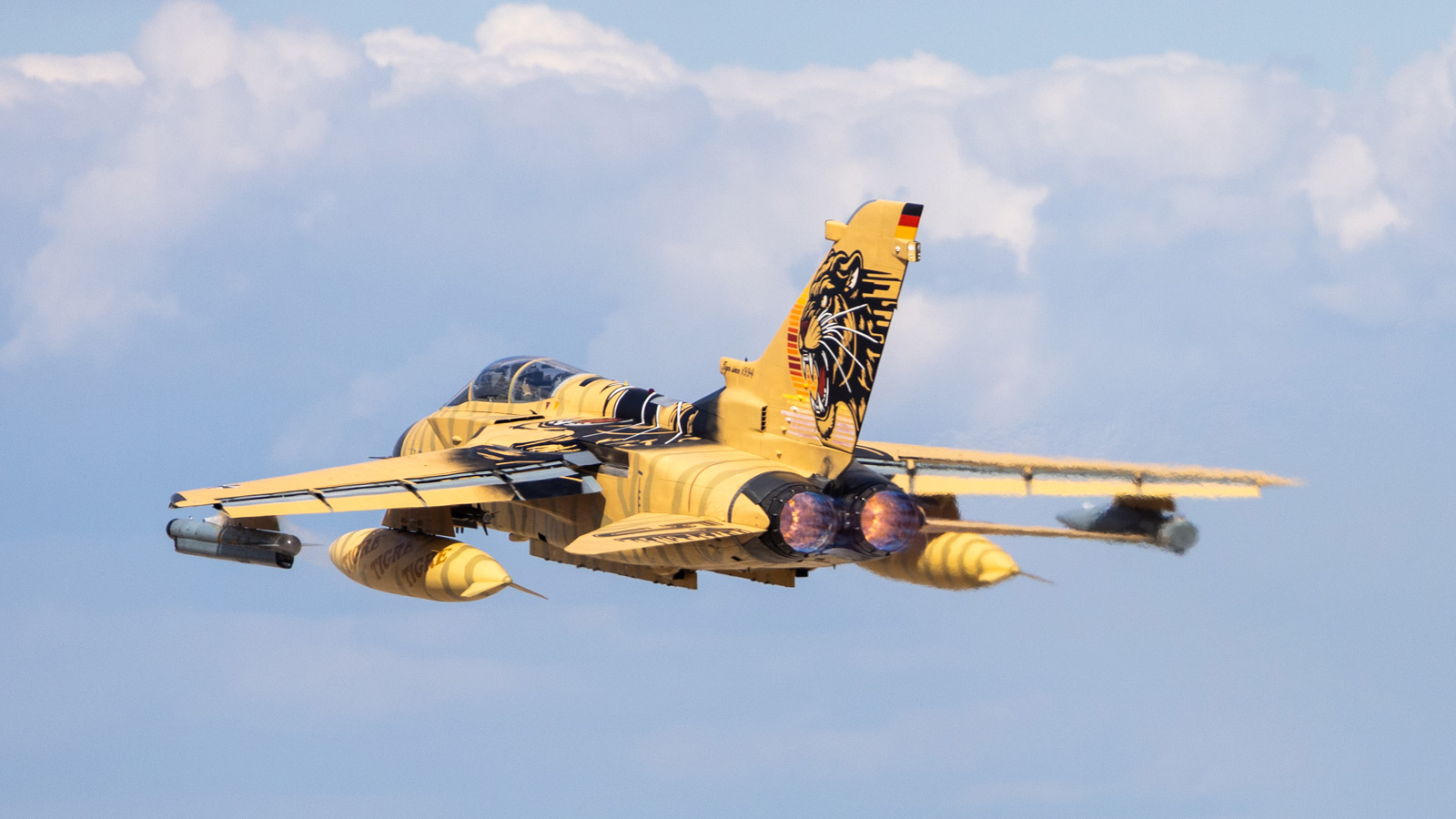 Určitě nejzajímavější a nejočekávanější událostí Tiger Meetů je vždy představení nových kamufláží s tygřím motivem a ani letošní ročník nebyl výjimkou. Už v předstihu vzbudil největší pozornost letoun F-16AM domácího portugalského letectva z letky 301 „Jaguares“, který pro tuto příležitost dostal mimořádně povedený nátěr s vyobrazením hlavy jaguára na horní části trupu a křídel, včetně pruhů na spodní straně trupu. Dalším letounem, který budil náležitou pozornost, byl německý stroj Tornado ECR reg.46+38 od TLG51 ze Schleswigu, jenž se představil v zajímavém nátěru „Pouštního tygra“. Zajímavých nátěrů však bylo na letošním NTM25 mnohem více, jak ostatně dokládají následující snímky.
