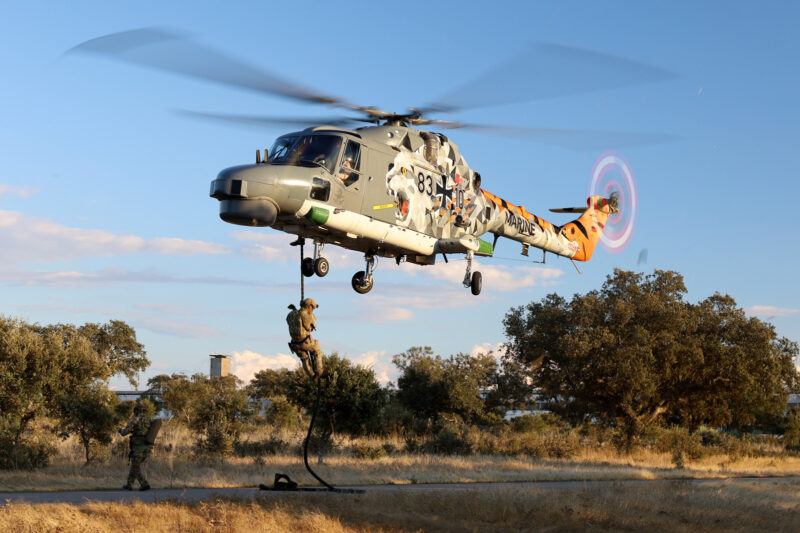 Řada misí NTM25 byla určena přímo pro vrtulníkové posádky, které například procvičovaly zadržení vozidla jedoucího vysokou rychlostí a zajetí cíle velkého zájmu. Během této mise Target Vehicle Checkpoint (TVCP) se například procvičovalo i rychlé nasazení sil pomocí techniky Fast Rope. (foto: Força Aérea Portuguesa)