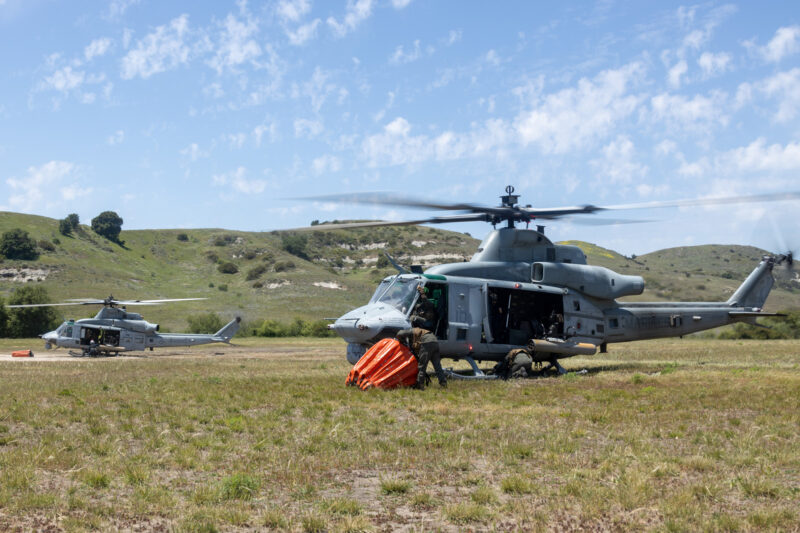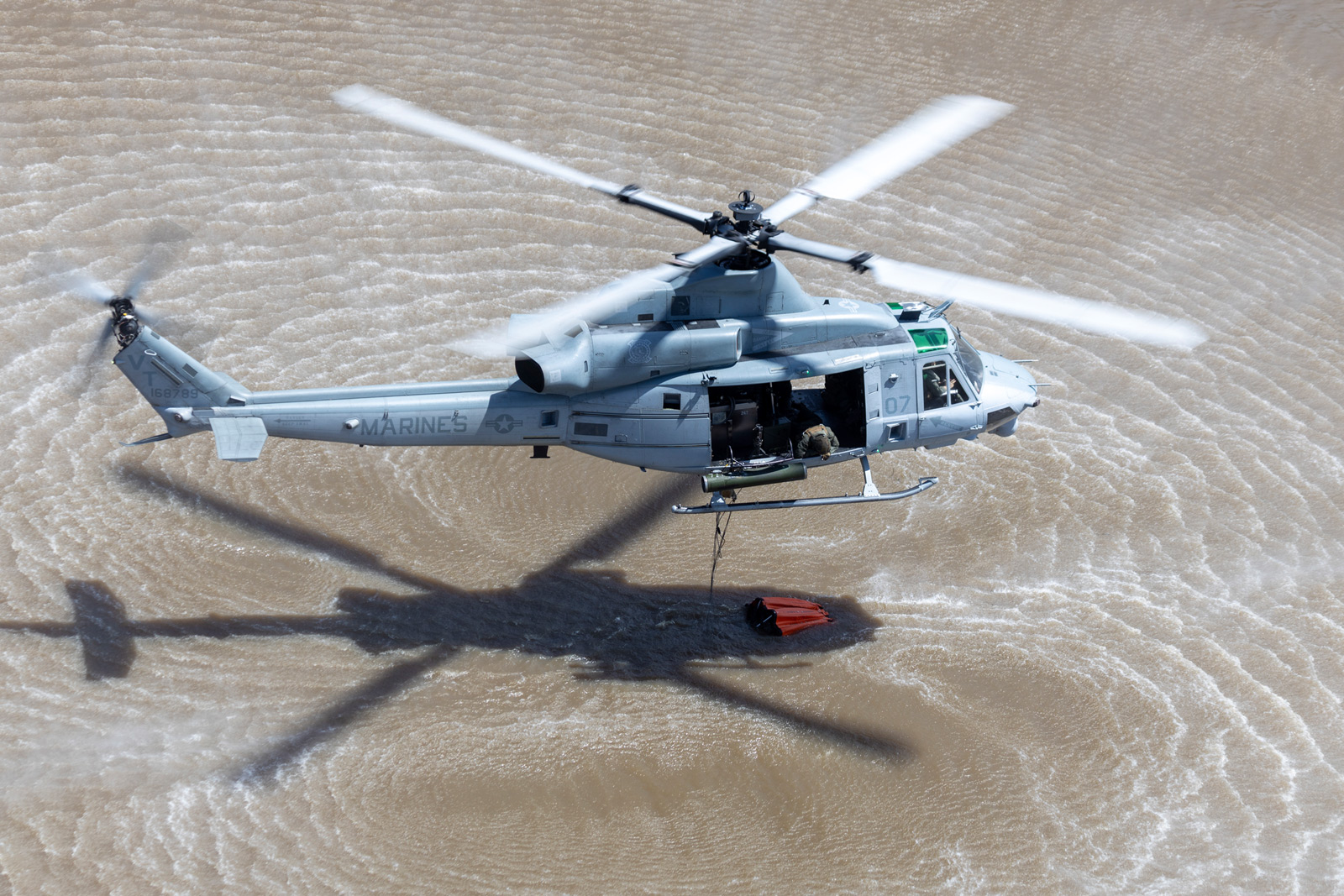 S tím jak postupně dochází k odstavování prvních strojů transportní verze W-3A z provozu a vzhledem k vyřazení všech Sokolů nejpozději do konce roku 2028 plánuje náměšťská základna využít v budoucnu pro hasební operace i nové vrtulníky UH-1Y Venom od 221. vrtulníkové letky, které mohou nést velký bambi vak o objemu 911 gallonů (3500 litrů). (foto: Cpl. Noah Martinez a Cpl. Daniel Childs)